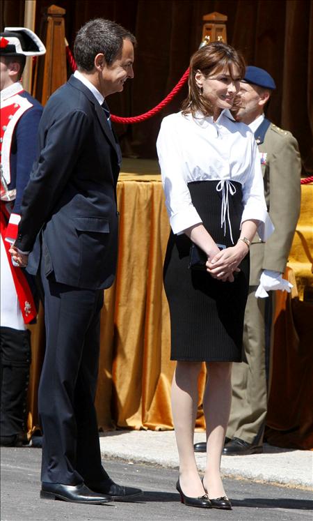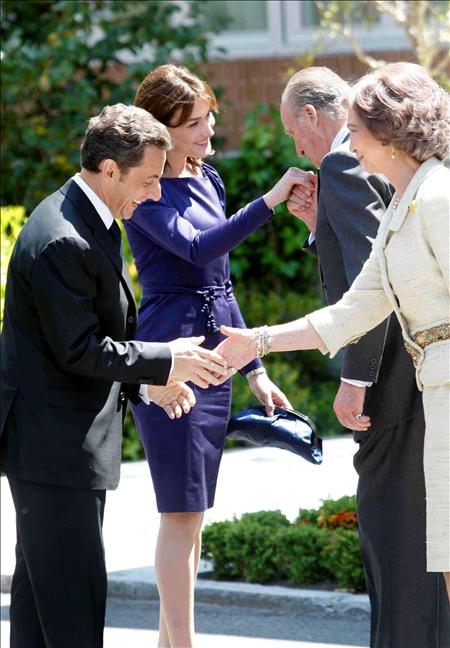 El presidente francés Nicolás Sarkozy y su esposa Carla Bruni se encuentran de visita en España, el encuentro fue un duelo de elegancia entre la primera dama y la princesa Letizia quienes se saludaron cordialmente y se les vio conversando con mucha cortesía.