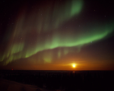 Una aurora boreal acompaña a esta puesta de sol